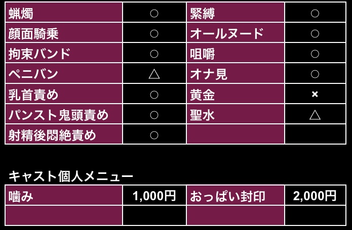 まるでチョコレートのようなほろ苦さも感じられるまったり濃厚な時間、そして抱擁されたくなるような慈愛も秘めているのが特徴です。野薔薇さんとの時間を一度過ごしたら、きっとまたすぐにリピートしたくなる事でしょう。